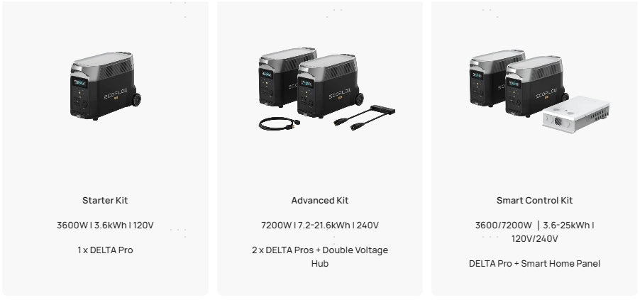 Simple, sustainable, and affordable whole-home backup power solutions with an output power of up to 7200W and a whopping 21.6kWh capacity for security and comfort. Easily chain together two DELTA Pros using the Double Voltage Hub. The solution provides a convenient home battery system without rewiring or running dangerous extension cables through your home.